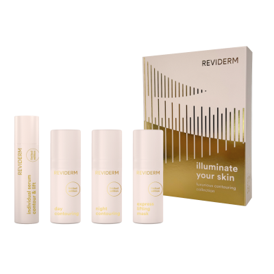 Das luxurious contouring collection Set enthält day contouring (20 ml), night contouring (20 ml), express lifting mask (20 ml) und eine limited edition des individual serum contour & lift (15 ml) - alles Produkte, die auf der Basis der einzigartigen Anti-Glycation Formula (AGF) dem Prozess der Verzuckerung der Haut effektiv entgegenwirken. Alle vier Produkte des Miniaturen-Sets zielen darauf ab, Falten sichtbar zu glätten und die Konturen zu straffen.